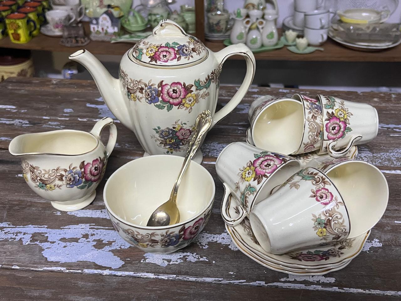 Hierdie elegante vintage teestel bring die sjarme van ’n vervloë era na jou tafel.